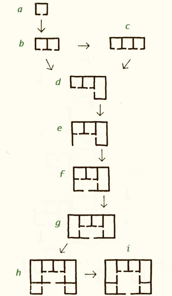 Si hom dona un cop d’ull a les construccions tradicionals del Mediterrani (aquí n’afegeixo algunes), i està familiaritzat amb les plantes de les cases pageses d’Eivissa, hi veurà moltes similituds.