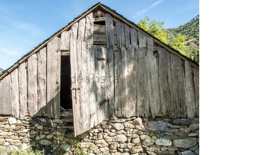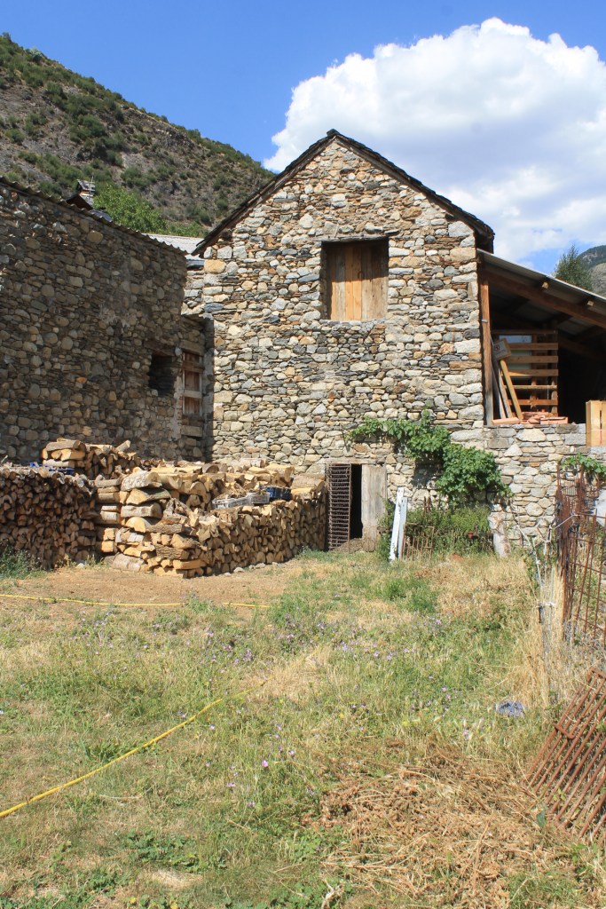 Al seu dia, a principis d’estiu, vam estar amb el meu fill petit a una borda a prop de Baqueira, per casualitat. Transformada en restaurant de luxe, m’hi vaig fer un cafè i vaig poder fer un parell de fotos. Pertanyia a la classe de semiencastades en terreny, amb accés de vaques a un extrem ia un nivell més baix, i l’entrada d’herba a l’oposat.